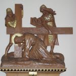 The weight of the cross is unbearable and Jesus falls under it – the first of three falls. How could he enter our lives completely without surrendering to the crushing weight of the life of so many on this earth! He lies on the ground and knows the experience of weakness beneath unfair burdens. He is pulled up and made to continue.